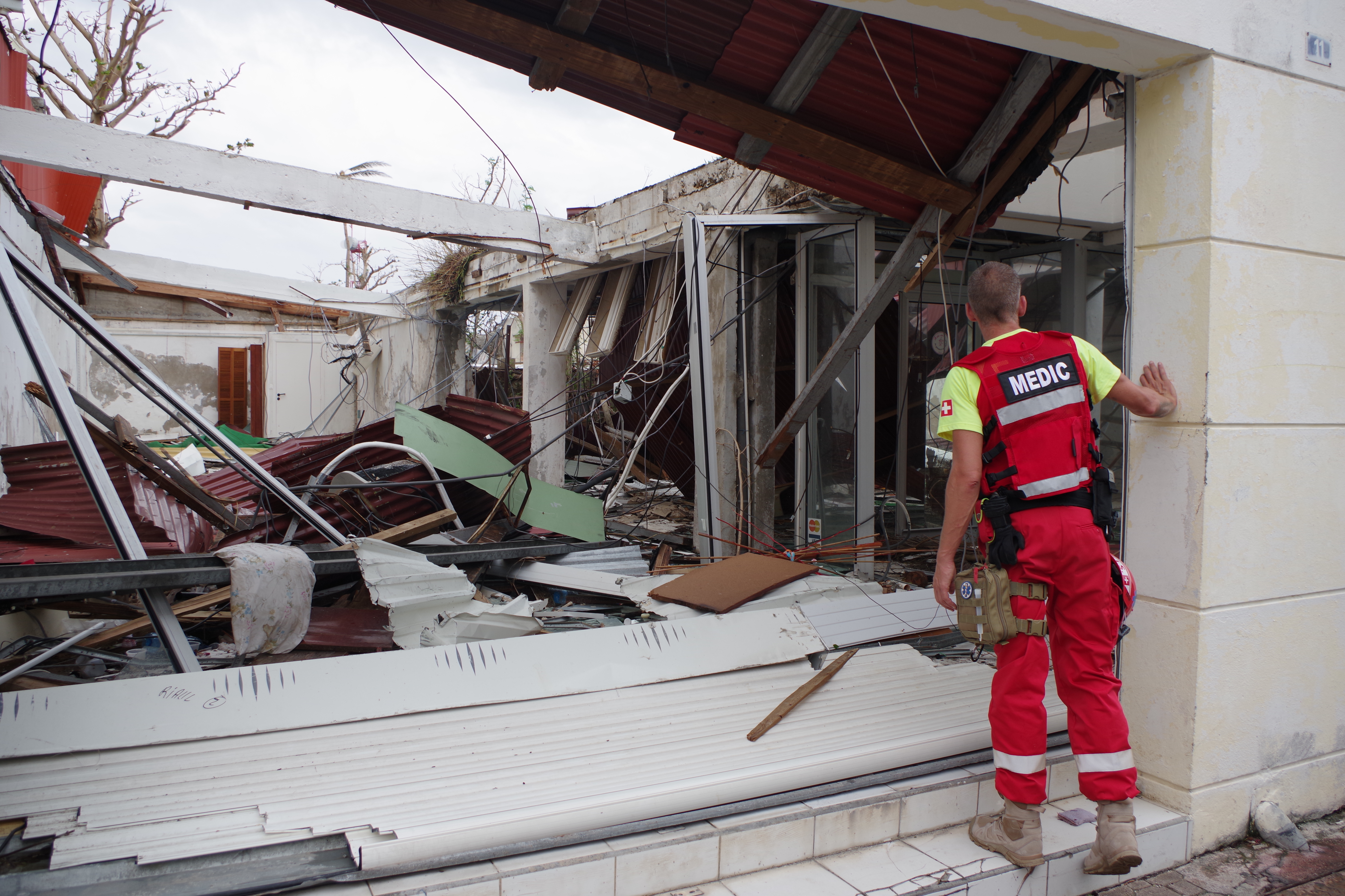 L'USAR GIS a constitué une équipe de 10 bénévoles dès le lendemain du passage du cyclone dévastateur "IRMA". Le passage du deuxième cyclone "JOSÉ" ayant bloqué les équipes de secours en Guadeloupe (base arrière des secours) l'USAR GIS a été engagée pour 10 jours en autonomie complète. Dès son arrivée sur l'île de Saint-Martin, l'USAR GIS a été affecté sur la Ville de Marigot au lycée des îles du nord dans le quartier de Concordia. L'objectif de sécurisation de l'établissement afin d'ouvrir au plus vite et en sécurité a été atteint par la mise en œuvre de reconnaissances par drone afin de déterminer les actions prioritaires par la dépose de tôles arrachées, des ouvrants et cloisons menaçant de tomber, une remise en fonctionnement partiel de l'électricité et le réseau informatique. Ce travail a été réalisé grâce aux compétences professionnelles complémentaires des 10 membres de l'association et en accord avec madame le proviseur de l'établissement et le centre de coordination opérationnel des secours. L'USAR GIS a également bénéficié du renfort de l'ONG "Architectes de l'urgence " et d'une section militaire du SMA.A notre départ, l'ensemble des 4 hectares du site était opérationnel pour une ouverture sécurisée de l'établissement.