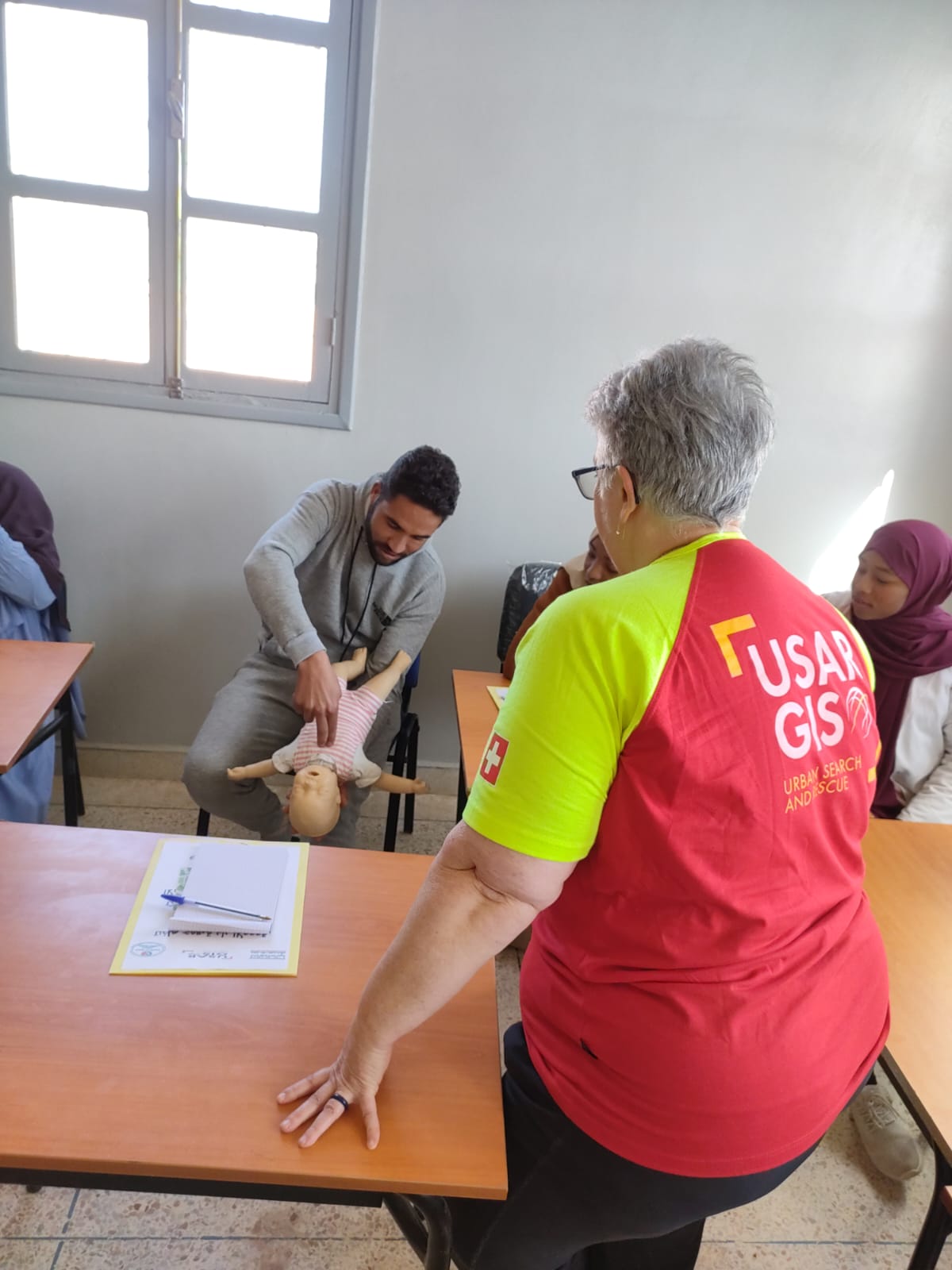 Ce mardi 27 février 2024, une équipe composée de 5 membres du GIS s'est envolée pour le Maroc afin de former des bénévoles. Ce 29 février, ce sont 27 femmes des relais communautaires et 9 éducateurs pour personnes en situation de handicap qui ont été formés aux gestes d'urgence à la maison de l'accouchement de Tinzouline. Puis ce sont les joueurs et encadrants du club de football d’Agdz qui sont formés aux gestes d’urgence. En tout, c’est plus de 60 personnes à Tinzouline et Agdz qui ont été formées durant cette mission. Des échanges riches en émotion entre les membres du GIS et ces bénévoles marocains.